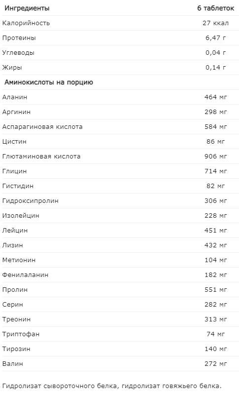 В Amino Pro 9000 включен легкоусвояемый гидролизованный протеин говядины, очищенный от липидов. Также Amino Pro 9000 содержит протеиновый гидролизат молочной сыворотки, который отличается питательной ценностью и быстротой усвоения. Эти два вида протеинов являются наиболее эффективными для восстановления и роста мышечной массы.