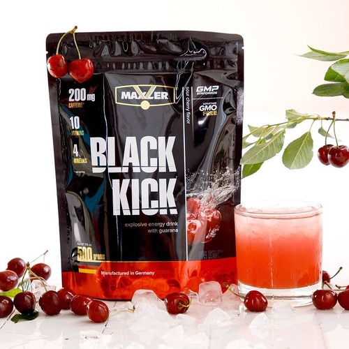 Стимулирующий эффект этого продукта обеспечивается высоким содержанием кофеина и гуараны. Сочетание чистого кофеина (с его быстрым действием на организм) и экстракта гуараны (с медленным действием) гарантирует длительный эффект. Употребление Black Kick до и во время тренировки улучшает кровообращение, стимулирует выносливость и повышает работоспособность, а также помогает бороться с усталостью. Улучшает концентрацию и готовность к работе с экстремально высокими нагрузками. Этот продукт рекомендуется для людей, которые занимаются спортом, занимаются скоростно-силовыми видами спорта и фитнесом, а также ведут активный образ жизни в целом.