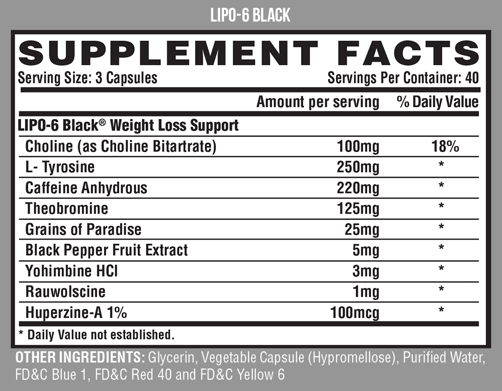 Для максимального эффекта, примите 3 капсулы утром и дополнительно 3 капсулы днем. Не принимайте в течение 6 часов до сна. Никогда не превышайте 6 капсул в сутки. Не следует принимать во время еды. Принимайте по меньшей мере за 30 минут до еды, кроме того, жиросжигатель Lipo 6 Black необходимо принимать циклами. Максимальная длина цикла составляет 8 недель, затем 4 недели перерыва. Регулярные физические упражнения и правильное питание являются важными для достижения вашей цели по снижению веса. Результат использования индивидуален, как и каждый человек.