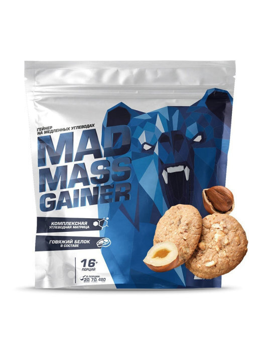 MADMASSGAINER — первый в РФ гейнер на медленных углеводах. В Отличие от распространенных формул, MADMASSGAINER содержит комплексную углеводную матрицу. Основа продукта — цельнозерновая рожь (38%), дополненная говяжьим белком (25%), что обеспечивает полноценное питание организма. Входящая в состав клетчатка помогает в работе пищеварительной системе. Продуктом идеально дополнять свой дневной рацион в любое время, как отдельный прием пищи.