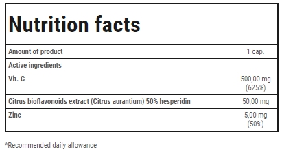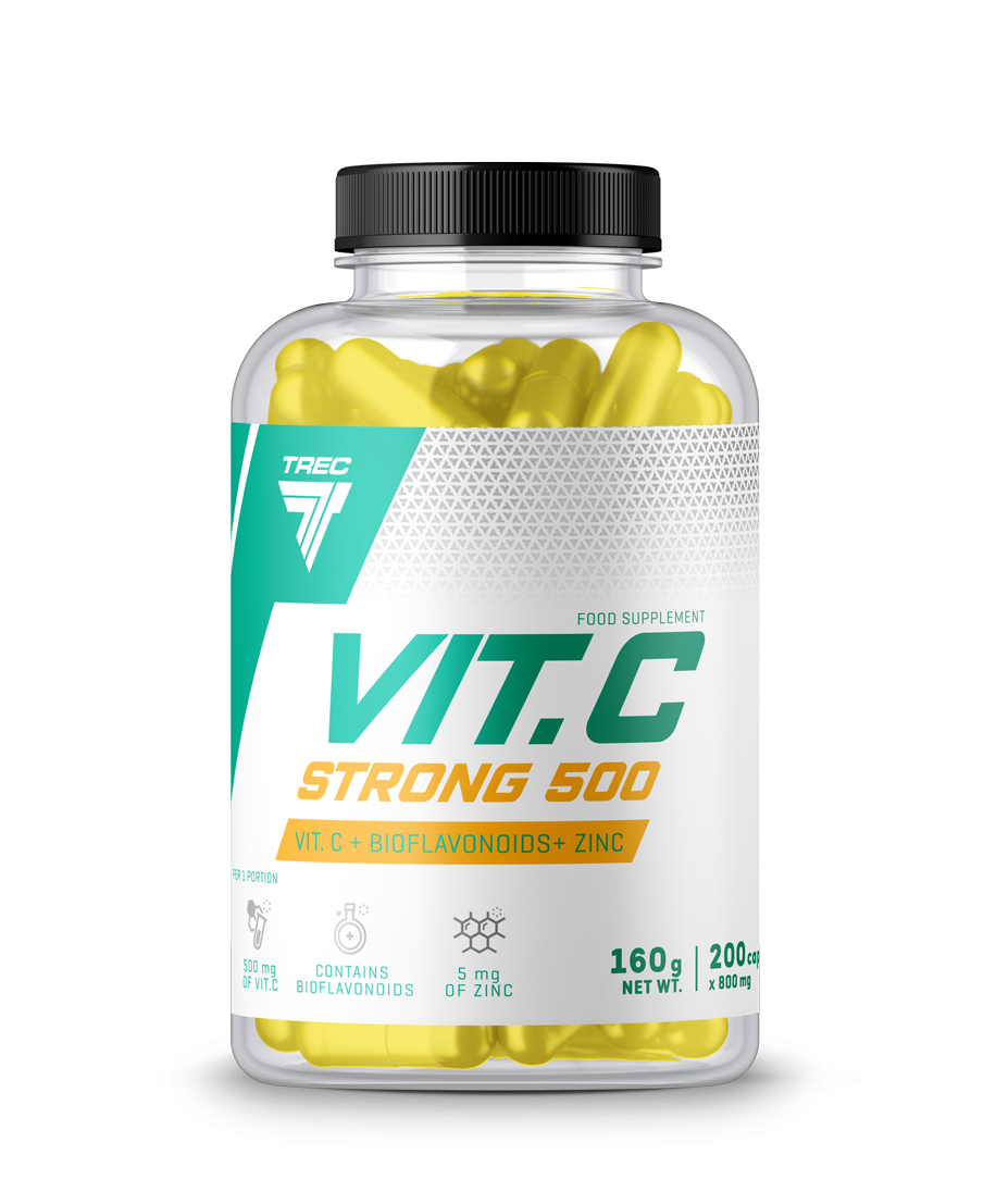 VIT.C Strong 500 — это витаминный препарат самого высокого качества, который содержит комплекс натуральных антиоксидантов, необходимых в борьбе со свободными радикалами, появляющимися в качестве побочного продукта интенсивного обмена веществ. Окислительный стресс является фактором, который негативно влияет на работу иммунной системы, а также на скорость регенерации организма после интенсивных физических упражнений.