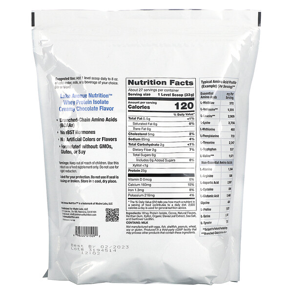 - Lake Avenue Nutrition Изолят сывороточного протеина