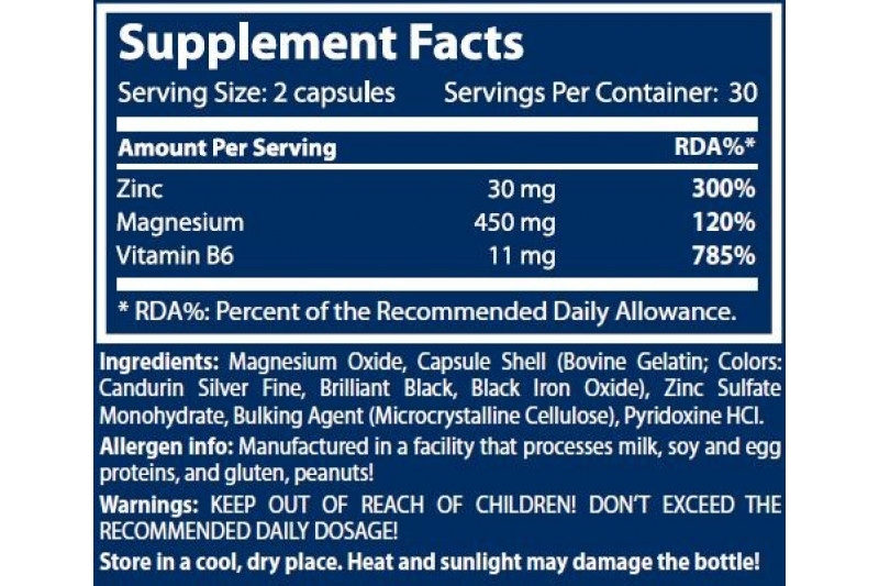 ZMB6 — комбинация необходимых витаминов и минералов, обеспечивающая потребность организма в цинке, магнии и витамине В6. ZMB6 способствует нормальному поддержанию уровня тестостерона, регулированию гормональной активности, фертильности и репродуктивной функции. Эта комбинация цинка, магния и витамина В6 позволяет поддерживать на должном уровне белковый синтез, обеспечение энергией и метаболизм углеводов, метаболизм жирных кислот, кислотность крови и баланс электролитов.